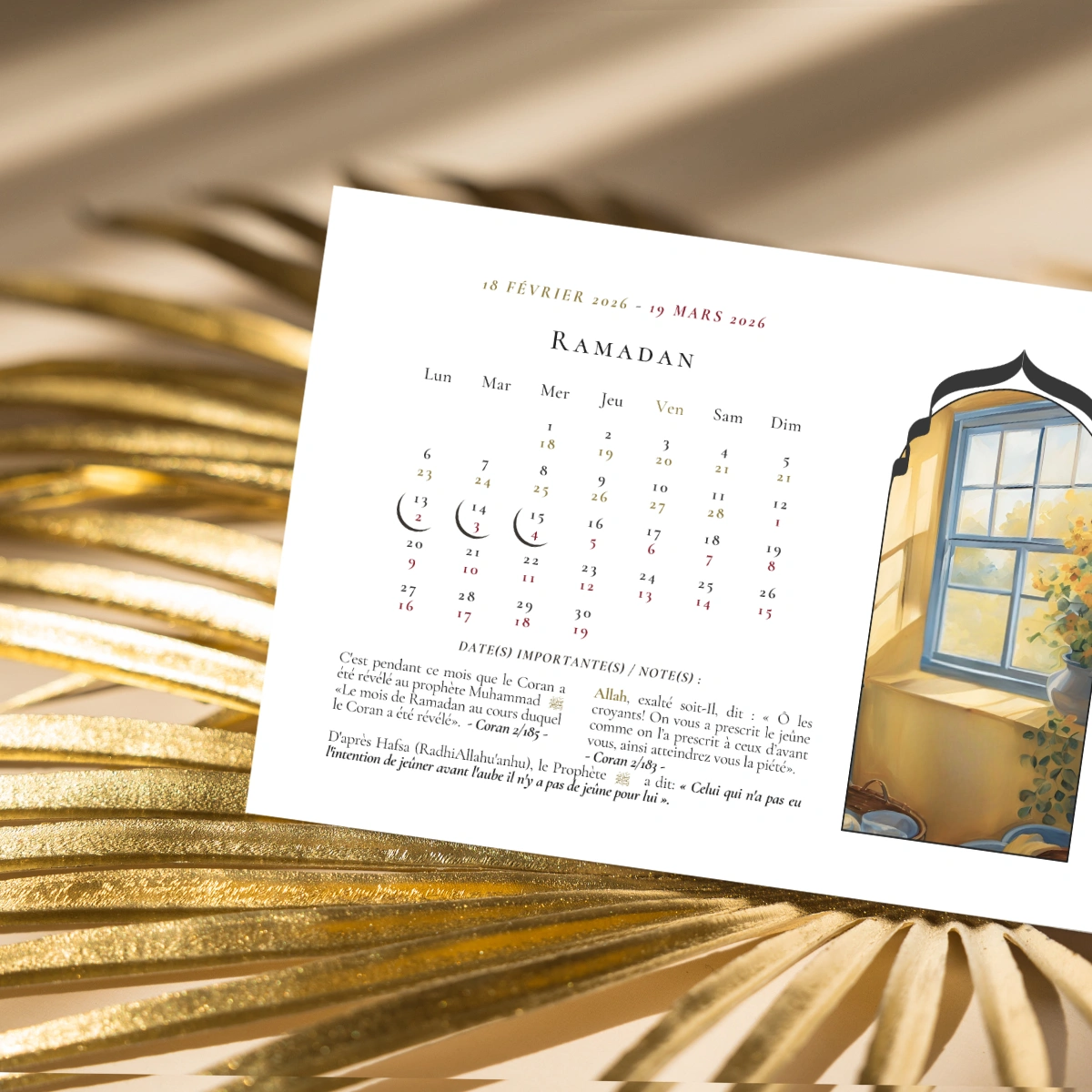 • 1 carte récapitulative regroupant les dates et repères importants de l’année hégirienne