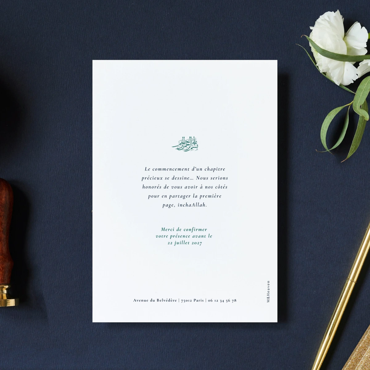Le faire-part Art Nouveau s’inspire des entrelacs floraux qui habillaient les intérieurs les plus raffinés, pensée pour tous les couples en quête d’une invitation au caractère fort.