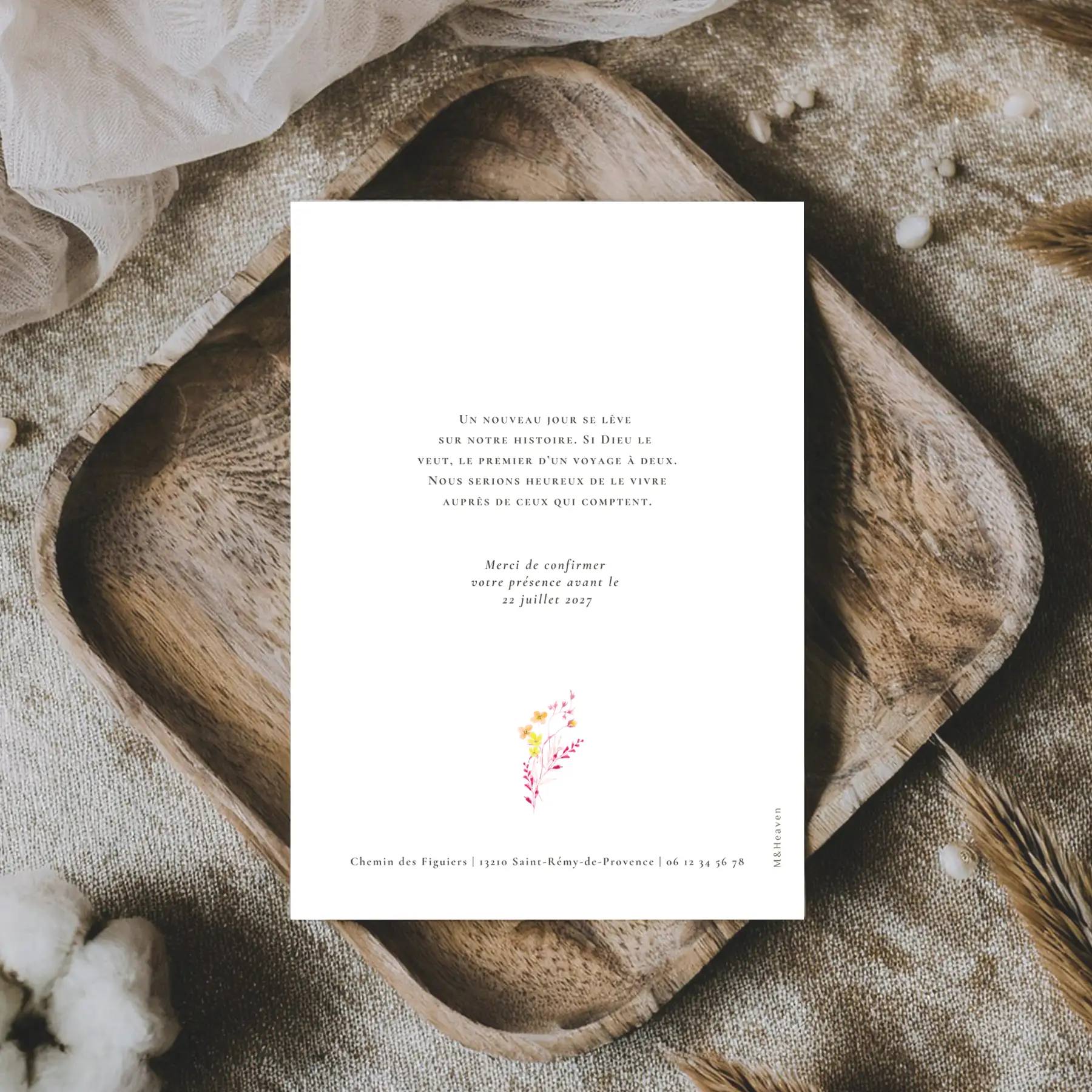 Floréal est un faire-part de mariage au design épuré aux touches florales délicates.