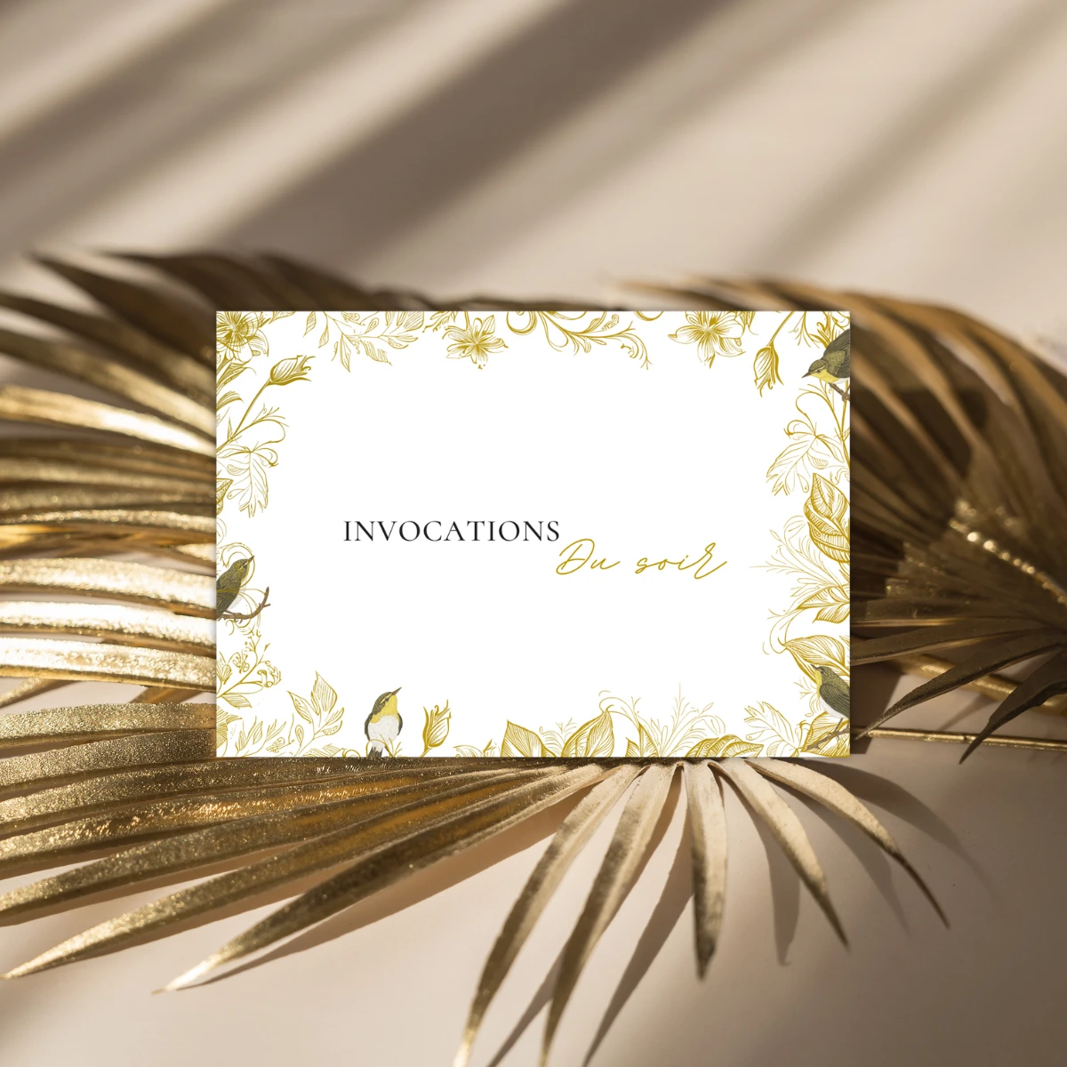 Les invocations du soir, issues de la Sunna, sont réunies dans un ensemble de 20 cartes au format pratique, pensées pour accompagner le quotidien de manière simple et accessible. Leur conception soignée, associant une typographie lisible à une mise en page élégante, facilite la lecture et soutient la mémorisation.